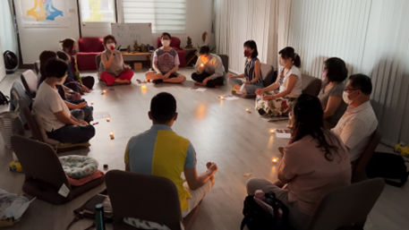 「我第一次能真正做我自己了,我再也不是誰的媽媽、誰的太太…」溫柔婉約的許媽媽這麼說著。他是一位事業和家庭都很成功的職業婦女,「從小到大,我今天早上才意識到,這是我第一次自己決定要為自己做一件什麼事情」,在經歷七個脈輪的探索,發現自己不喜歡過著原本的生活,用著別人的喜好當作自己的標準,小時候是父母、之後是先生和小孩,都忘了要自己熱愛的、喜愛的事情是什麼了,到了最後一天的工作坊早晨,終於不再是一個什麼角色、身分,能和自己很自在的親近、相處。